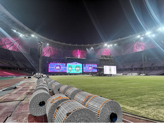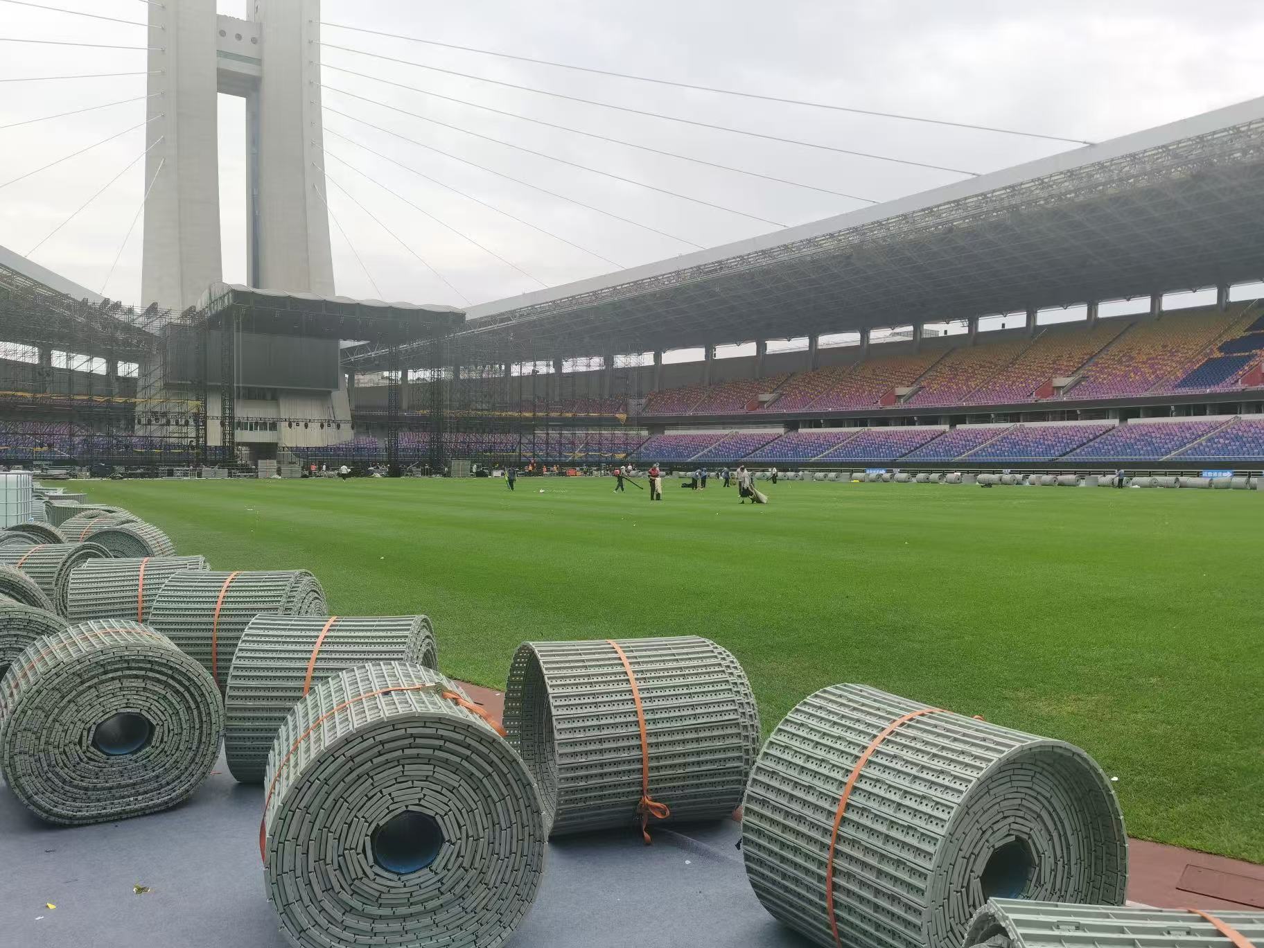 (3)適用于體育場、足球場開展體育活動時,保護草坪不受踏壓而損壞,也可作增加觀眾席場地使用。此保護板設計有出水通氣孔,防滑面及防滑槽,在增加觀眾席場地的同時,起到保護草坪的作用。